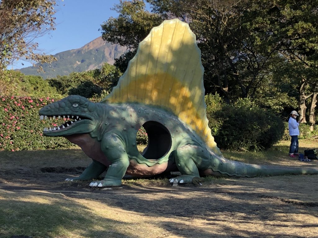 桜島 恐竜公園 おでかけ 2021.12.072022.06.17 桜島フェリー桜島側の山のてっぺんの公園。 広々としていい公園。 恐竜も予想以上に景色に馴染んでます。 ながーい滑り台は意外に滑って手を離すと怖いっ。