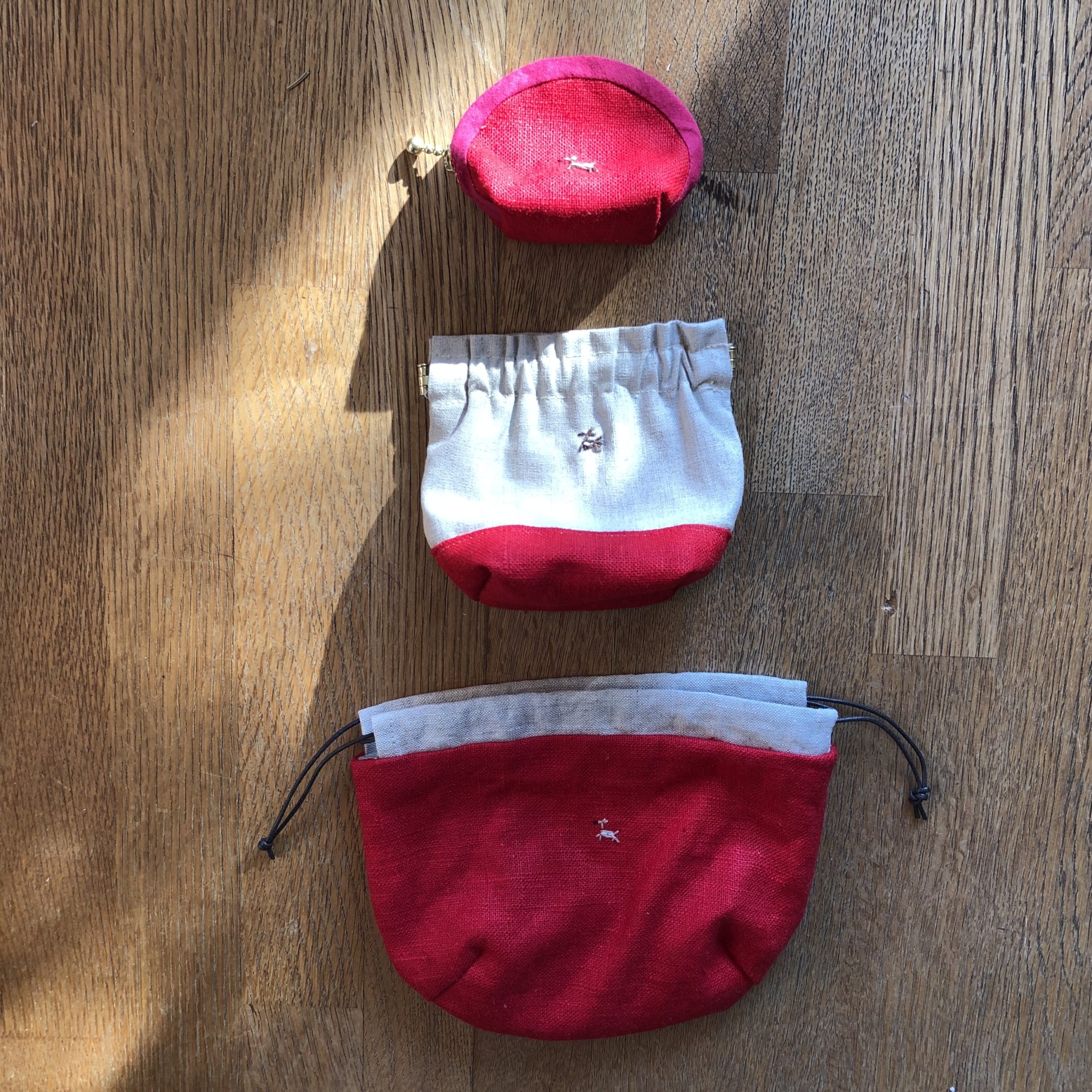 リネンの巾着袋&コインケース&ポーチを製作しました。
